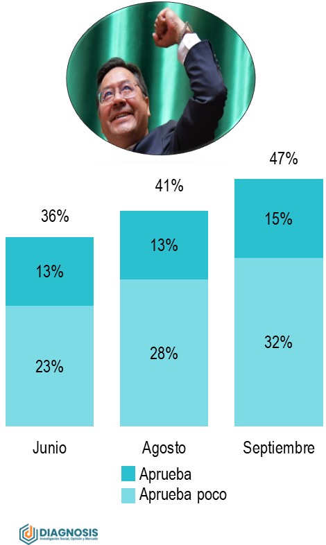Al finalizar su segundo año se incrementa el apoyo a la gestión de Luis Arce, acercándose al 50% de la población. La principal razón es la estabilidad económica. Poco a poco, algunos segmentos escépticos de las clases medias comienzan a valorar esta estabilidad que les permite desarrollar sus propias estrategias de empleo e ingresos.