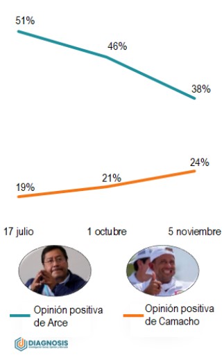 El conflicto por el Censo y las disputas internas del MAS han significado una notable disminución del apoyo a los líderes del oficialismo (Arce, Choquehuanca y Evo). Al mismo tiempo, no se observa un incremento relevante en el apoyo a Fernando Camacho. Ni siquiera en Santa Cruz, donde se evidencia un cierto cansancio con su liderazgo (los niveles de apoyo a Camacho en este departamento han disminuido del 63% al 47% durante el paro cívico). La intención de voto de Arce se ha desplomado (del 20% al 11%). En cambio, la intención de voto de Camacho se mantiene en torno al 5%. En suma, durante la pugna por la fecha del Censo, los líderes involucrados en él pierden.